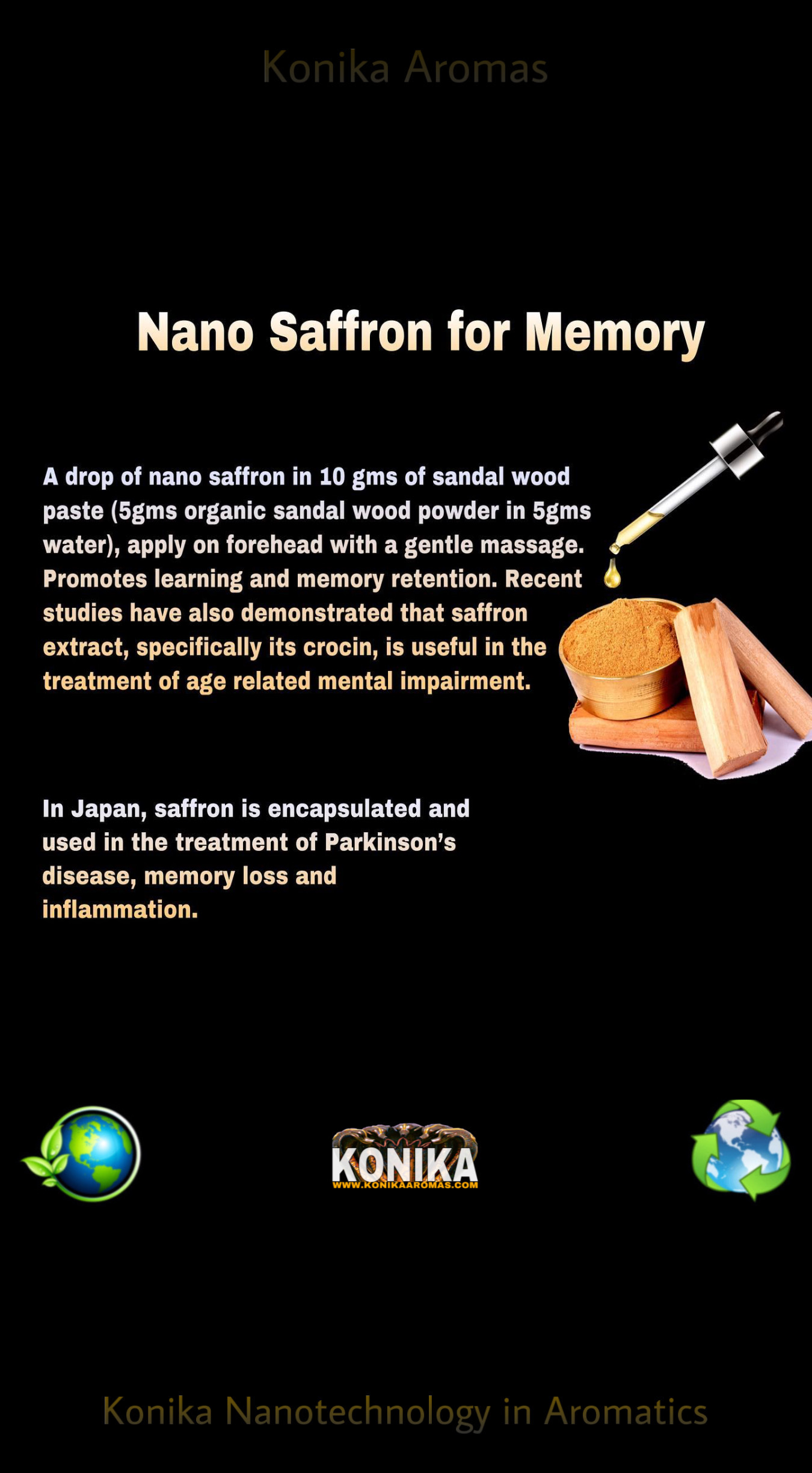 Nano saffron with activated nano particles which stimulates crocin when blended with sandal wood powder imparts soothing and relaxing the neurological cycle.