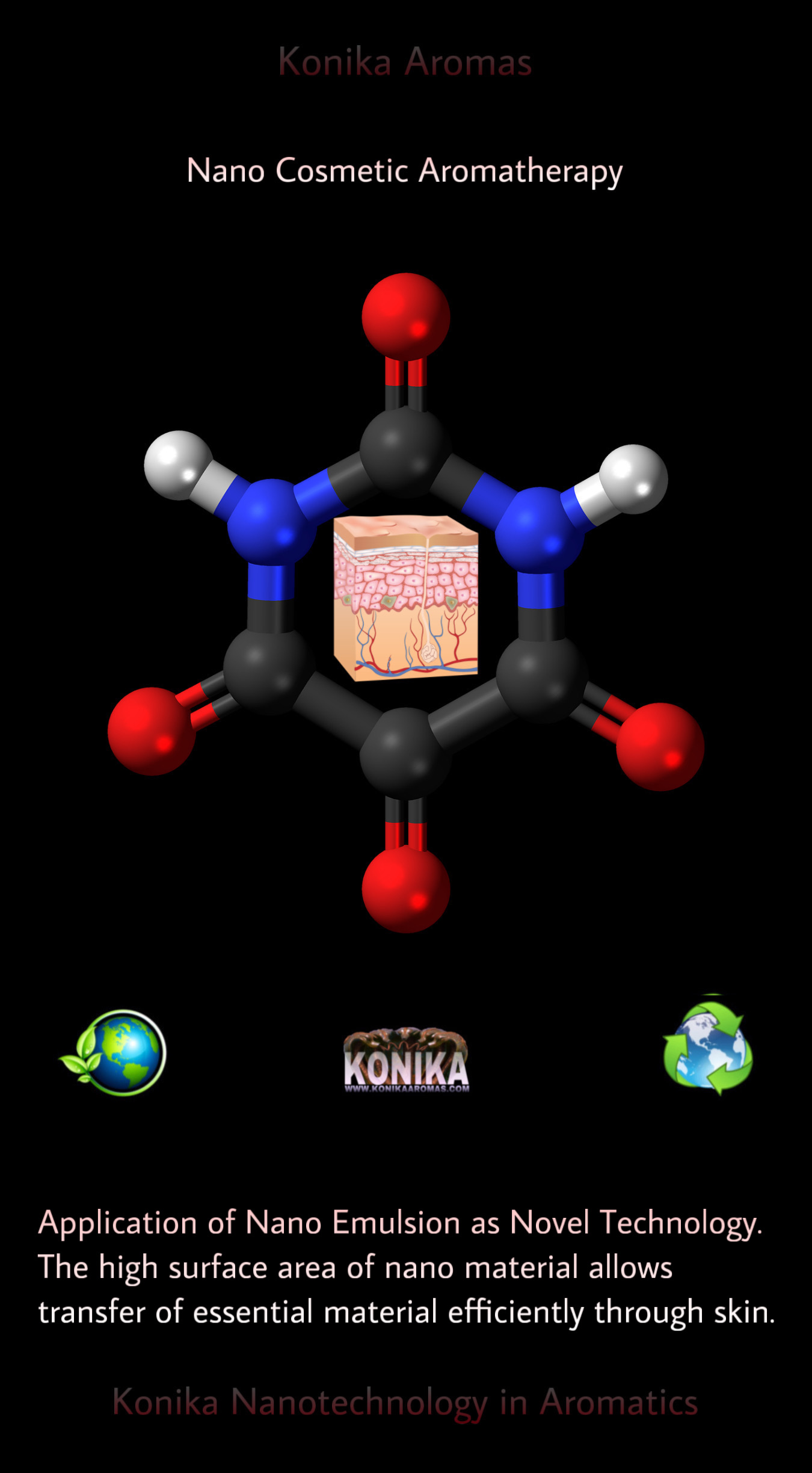 Human skin undergoes modification throughout the course of life because of physiological and external stimuli. Both the intrinsic (chronological) and extrinsic (environmental) overlap during a person’s lifetime and both are responsible for a person’s dysfunction of the skin natural self protection mechanism and repair capabilities. The use of nano blends in perfumery aims for long-lasting effects and increased stability. The high surface area of nanomaterials allows for more efficient transport of the ingredients through the skin.